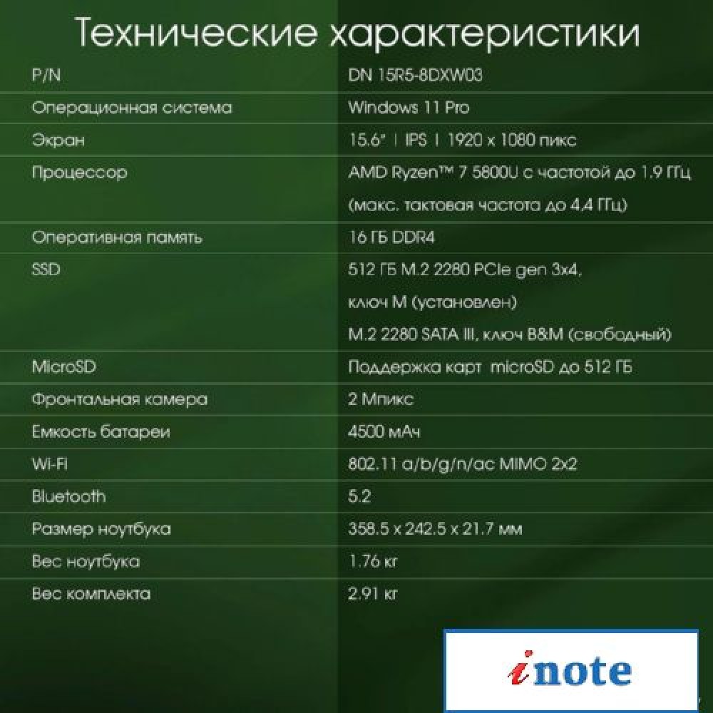 15.6" 1920 x 1080, IPS, 60 Гц, AMD Ryzen 5 5500U, 16 ГБ DDR4, SSD 512 ГБ, видеокарта встроенная, Windows 11 Pro, цвет крышки серый, аккумулятор 51.3 Вт·ч