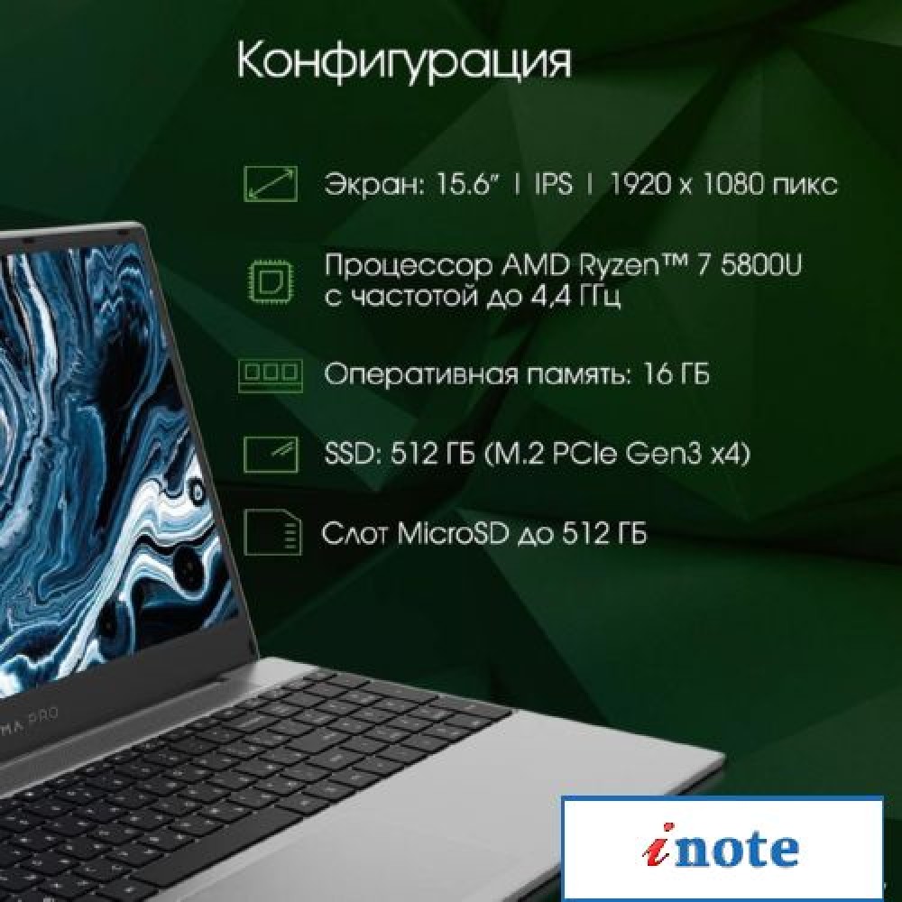 15.6" 1920 x 1080, IPS, 60 Гц, AMD Ryzen 7 5700U, 16 ГБ DDR4, SSD 512 ГБ, видеокарта встроенная, Windows 11 Pro, цвет крышки серый, аккумулятор 51.3 Вт·ч