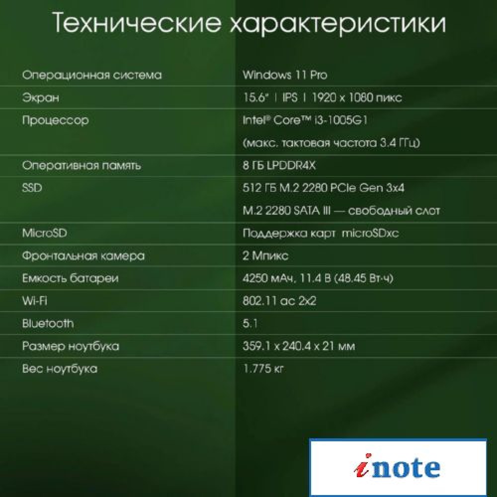 15.6" 1920 x 1080, IPS, 60 Гц, Intel Core i3 1005G1, 8 ГБ LPDDR4X, SSD 512 ГБ, видеокарта встроенная, Windows 11 Pro, цвет крышки серый, аккумулятор 48.5 Вт·ч